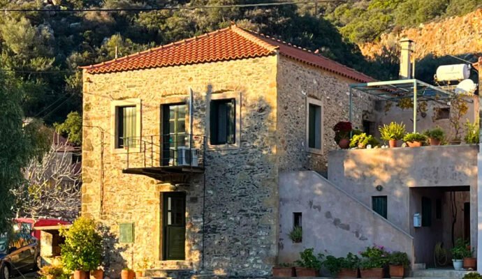 Charming renovated stone cottage nestled among century-old olive trees on the village